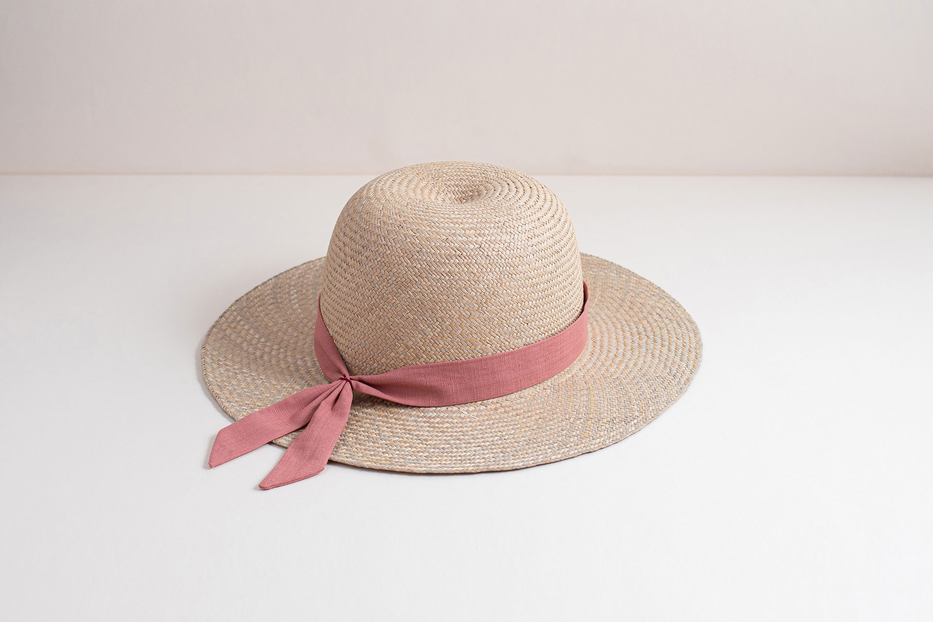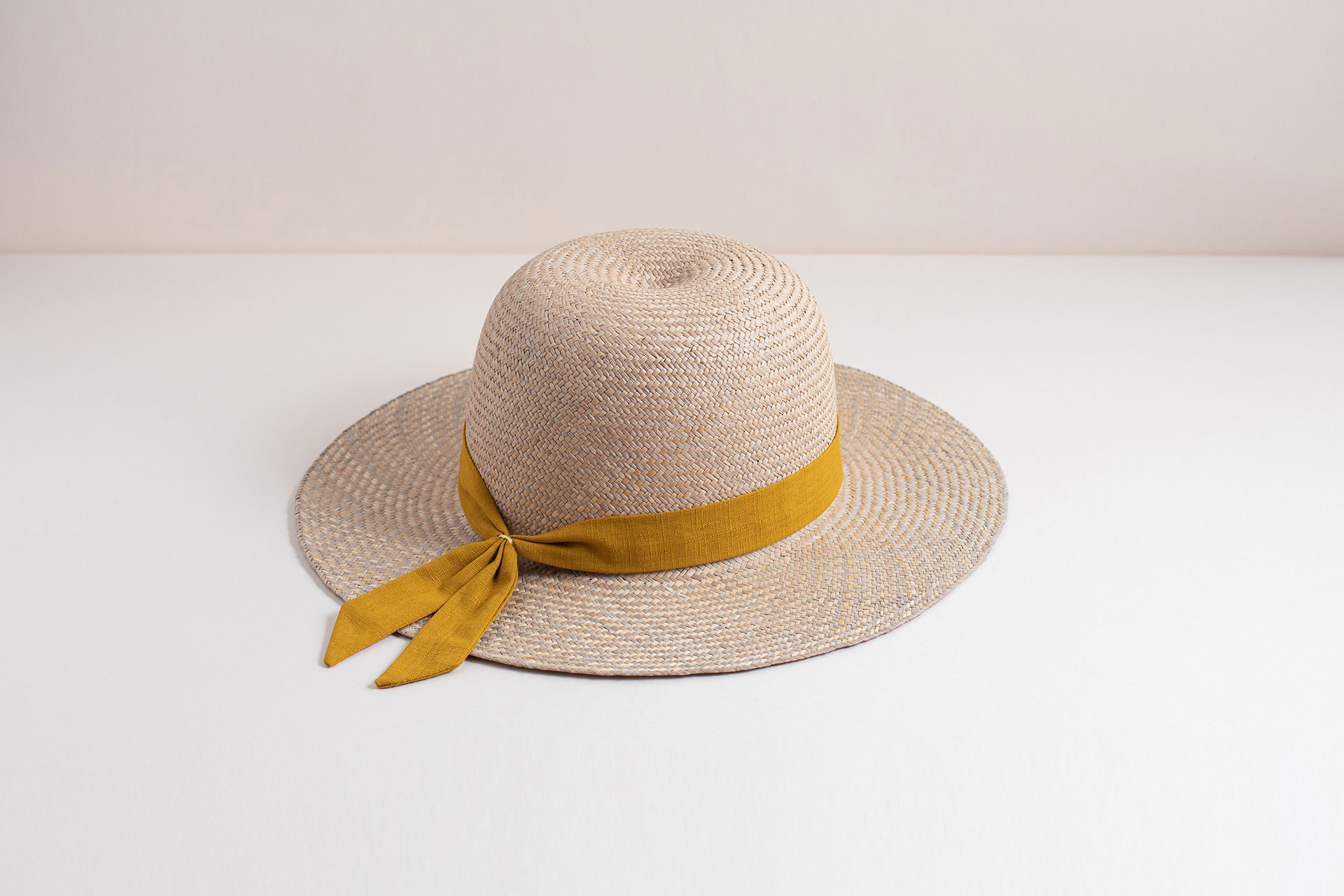 梨形帽為藺子2019年發起群眾集資的成果之一,在藺編工藝復興計劃當中,我們集資購買了帽子成型機,有了機器,我們便能透過開發不同款式的模具,豐富藺草帽的樣式。梨形帽顧名思義,外觀像梨子一樣,特色是頭頂上的凹陷,搭配適當的帽沿寬度,兼具遮陽與造型效果,不論是穿著褲裝或裙裝,都十分百搭,絕對是今年春夏外出的配件之一!