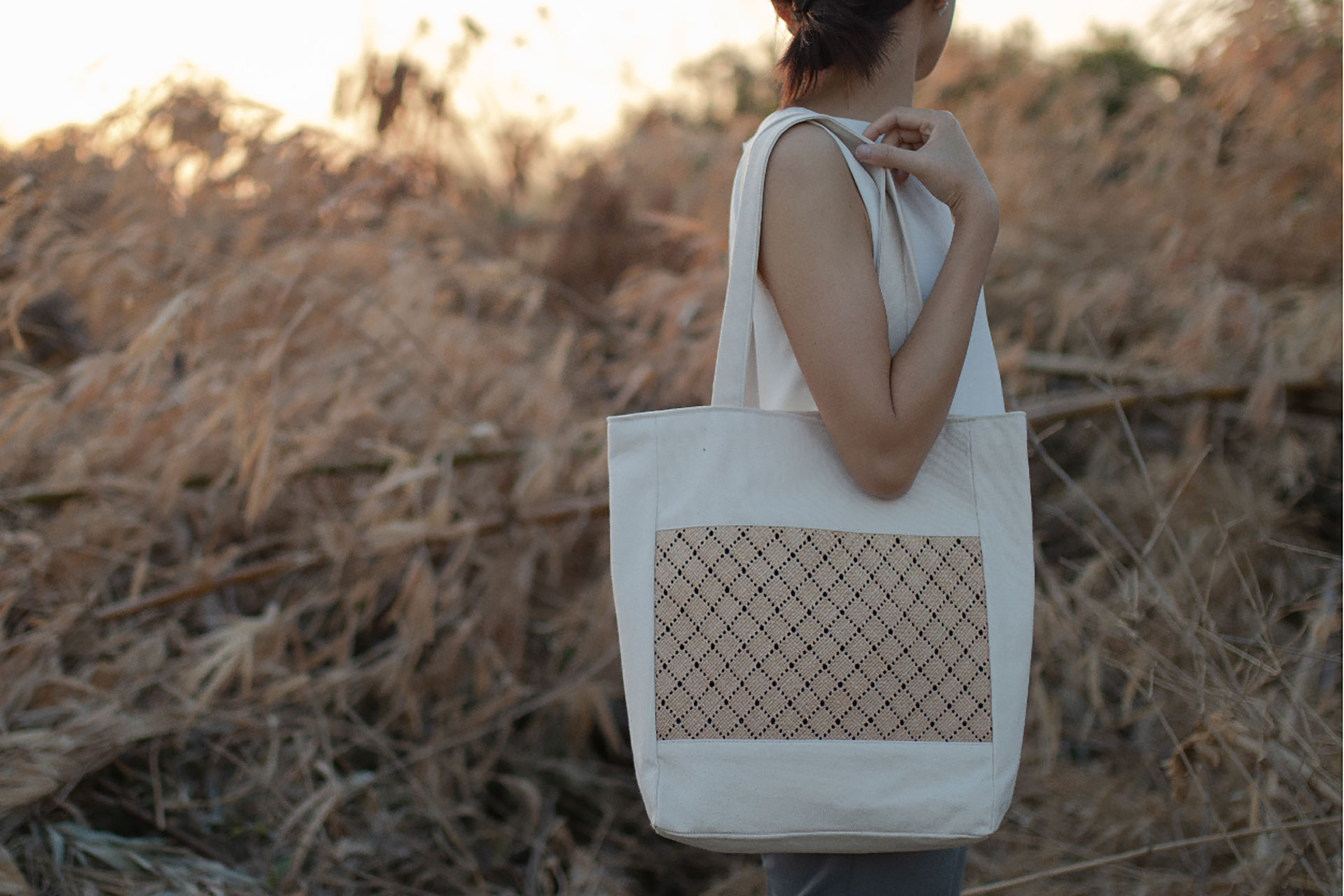 編紋帆布袋為藺子的人氣包款,米色帆布與藺草的搭配,除了多了一點休閒感之外,不同編紋的應用,也讓喜愛藺編工藝的民眾有更多地選擇!